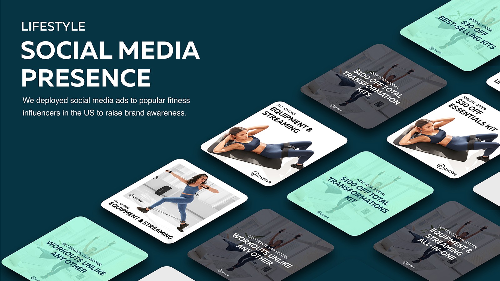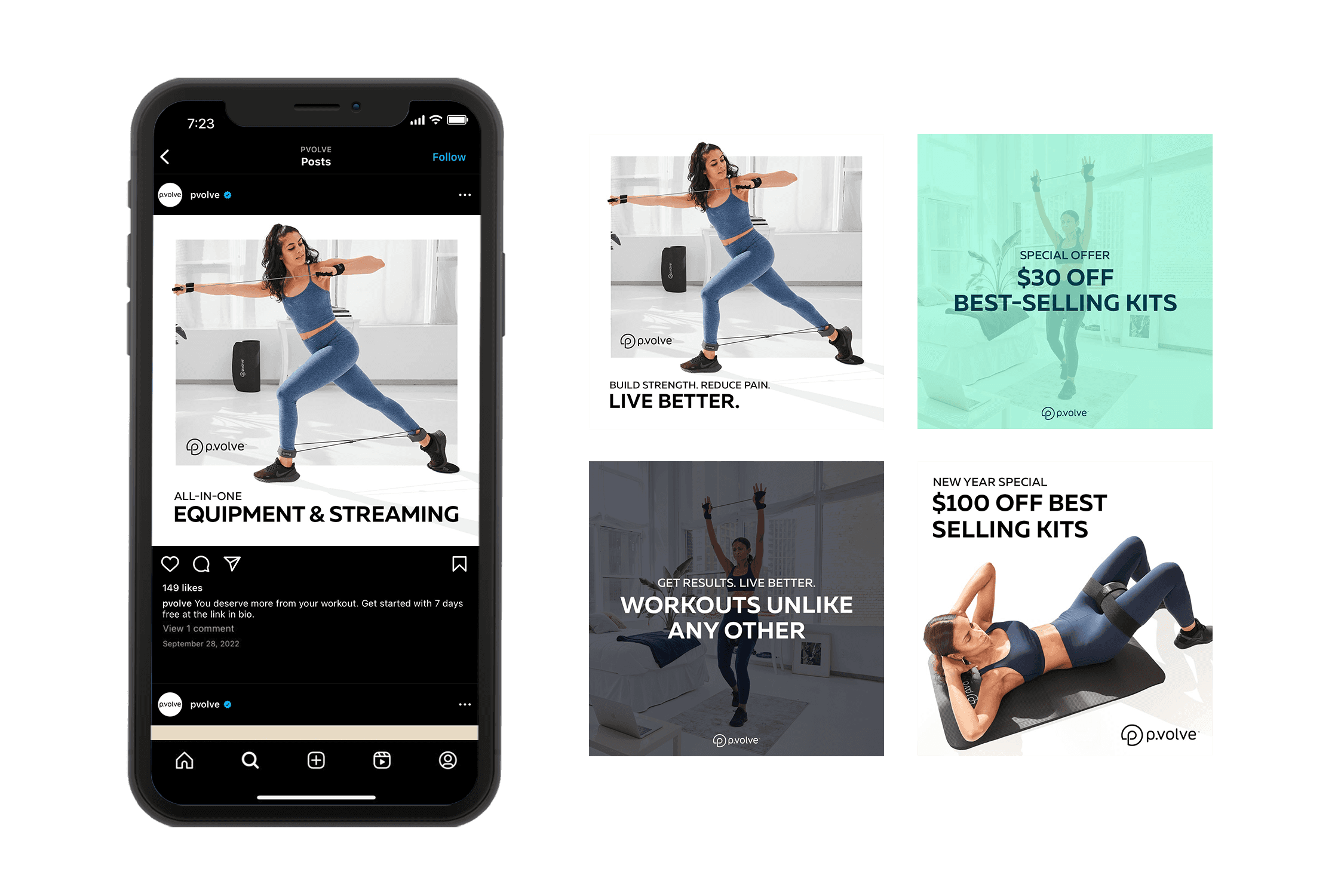 We designed social media posts for P.Volve promoting their at-home workout plans and equipment. The response from P.Volve’s demographic was highly favorable, leading to improved conversion rates and increased user engagement.
